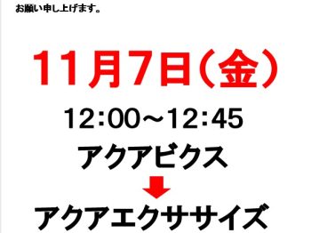 IR都合によりプールレッスンが代行となります。 9日は東IRに 16日は田村IRの代行レッスンとなり ……