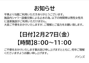 下記の時間温泉利用を停止させていただきます。