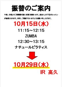 15日の高久IRのレッスンは休講となりますので、ご確認の上来館いただきますようお願いいたします。