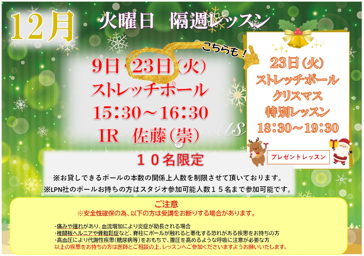 23日は「クリスマス特別レッスン」として昼・夜の2本行われます!
