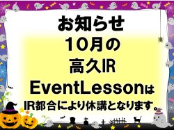 10月の各特別レッスンの予定が出ましたのでお知らせいたします。 EventはIR都合により10月はお ……