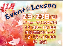 11月の特別レッスンの日程が決定いたしました。 下記確認の上参加くださいますようよろしくお願いいたし ……